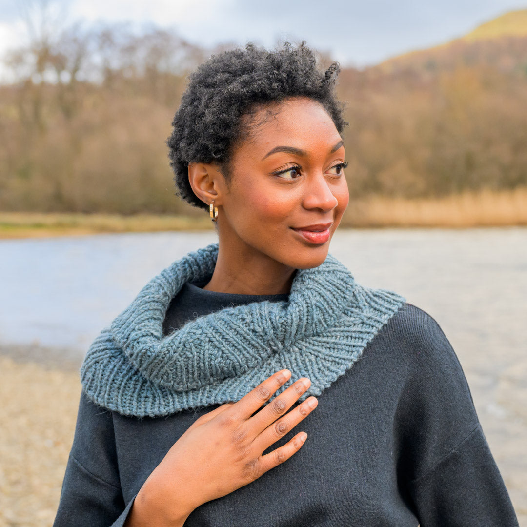 Treat yourself to the stylish comfort of the Pelagic Cowl. Also found on our Pelagic Cardigan, the undulating stitches bring lapping ocean waves to mind. In addition to warmth, this cowl will also round out your outfit with texture and polish.
