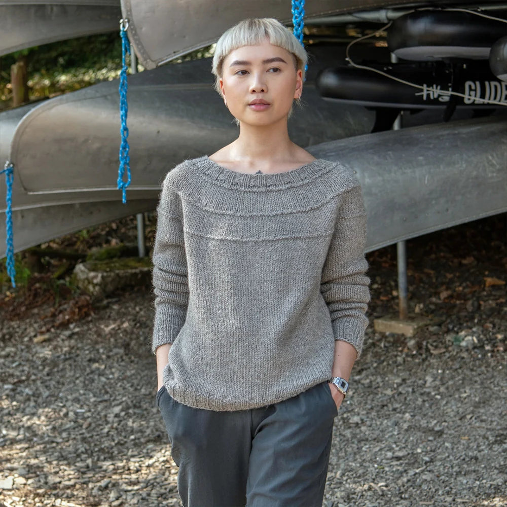 The Purls of Wisdom Sweater is a round yoke seamless pullover knit from the top-down. With just a bit of purl-stitch texture in the yoke, this sweater is ideal for a first sweater knitting project. The Fibre Co. Team designed the Purls of Wisdom Sweater to be extremely wearable with a beautifully minimalist aesthetic and well-considered details. A sweater this versatile has an infinite number of styling options: dress it up or dress it down, layer it up for a day out, or wear it with your favorite pj bottoms…the choice is yours! This kit is for a solid shade version of the sweater in &Make Aran and can be knit in 9 sizes.