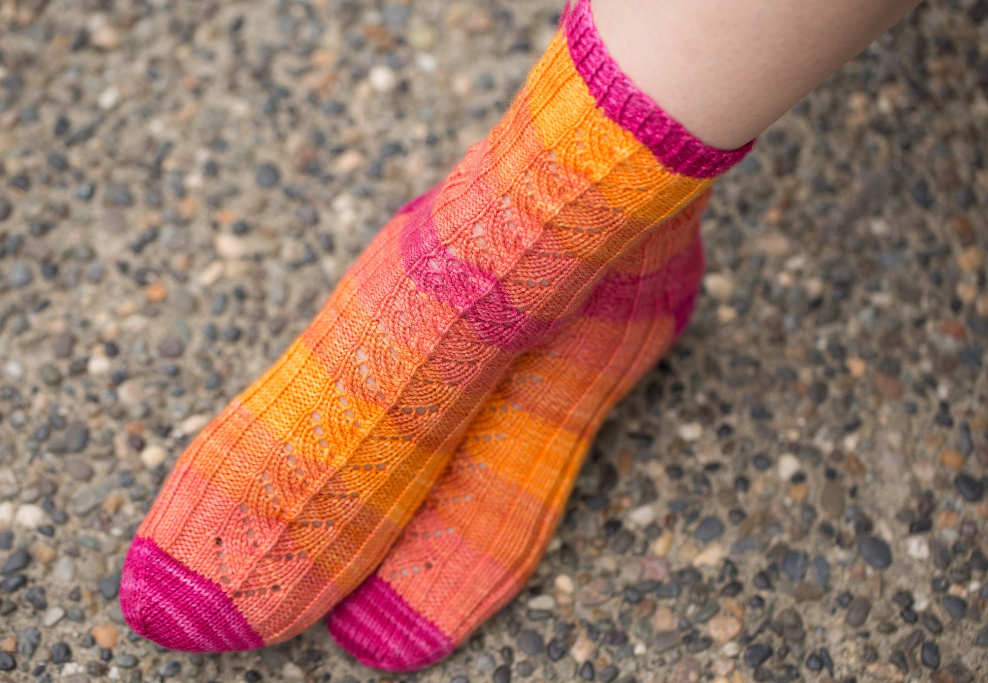 A great sock pattern from Sweet Georgia using Party of Five to create a vibrant, rich, and totally fun pair of socks. These are socks you’ll definitely want to wear every day!