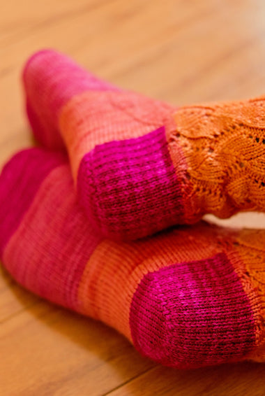 SweetGeorgia Party of 5 Gradience Sets craft a playful lace pair of socks.